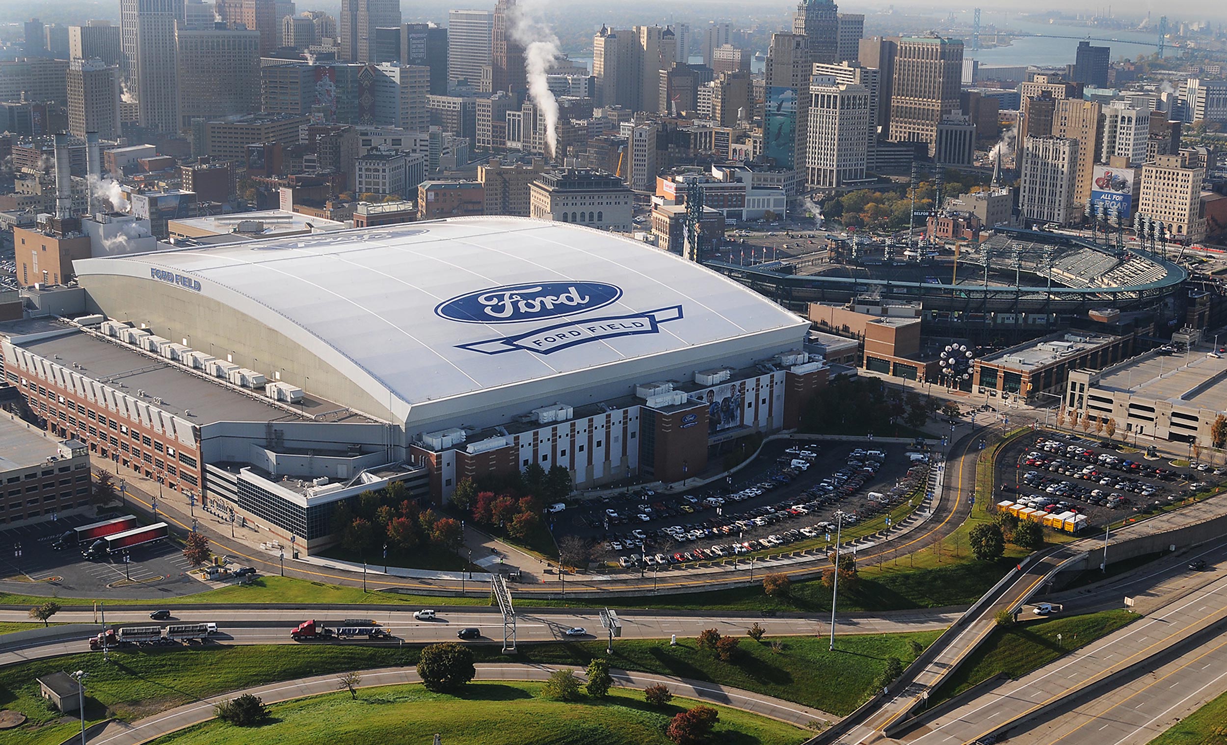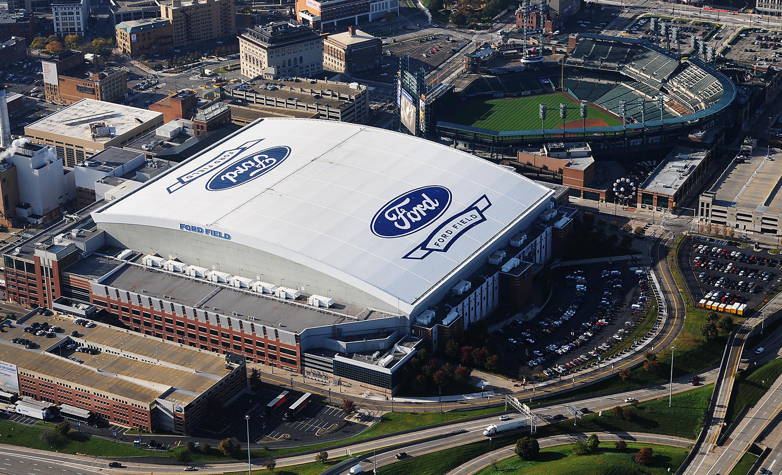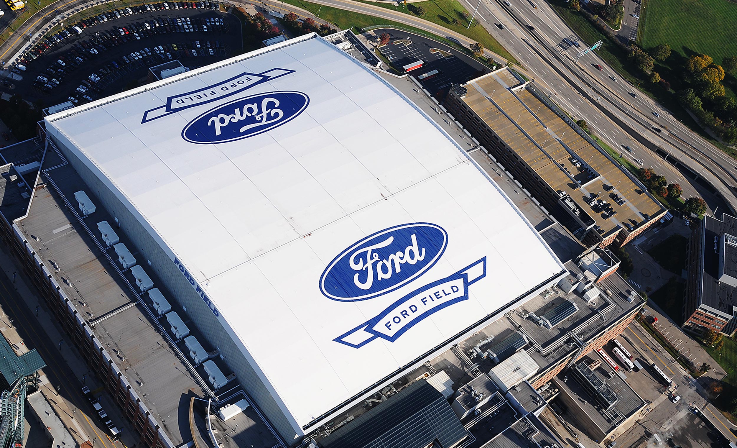 Ford Field Detriot, MI General Contractor: Tube Art We were hired to create two huge Ford logos on the roof of Ford Field. The layout of the iconic logo was critical to the success of the project. In under a month, using old world techniques, our craftsman took great care in creating the roof graphics. In the end we covered 64,000 square feet using a 20 Year Rust-oleum roof coating.