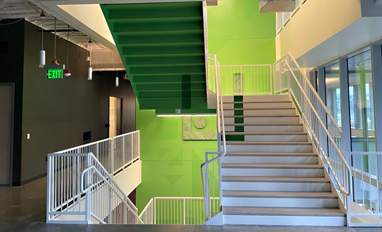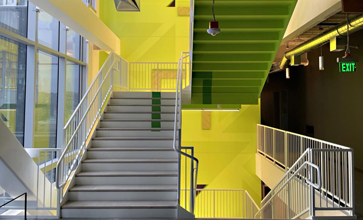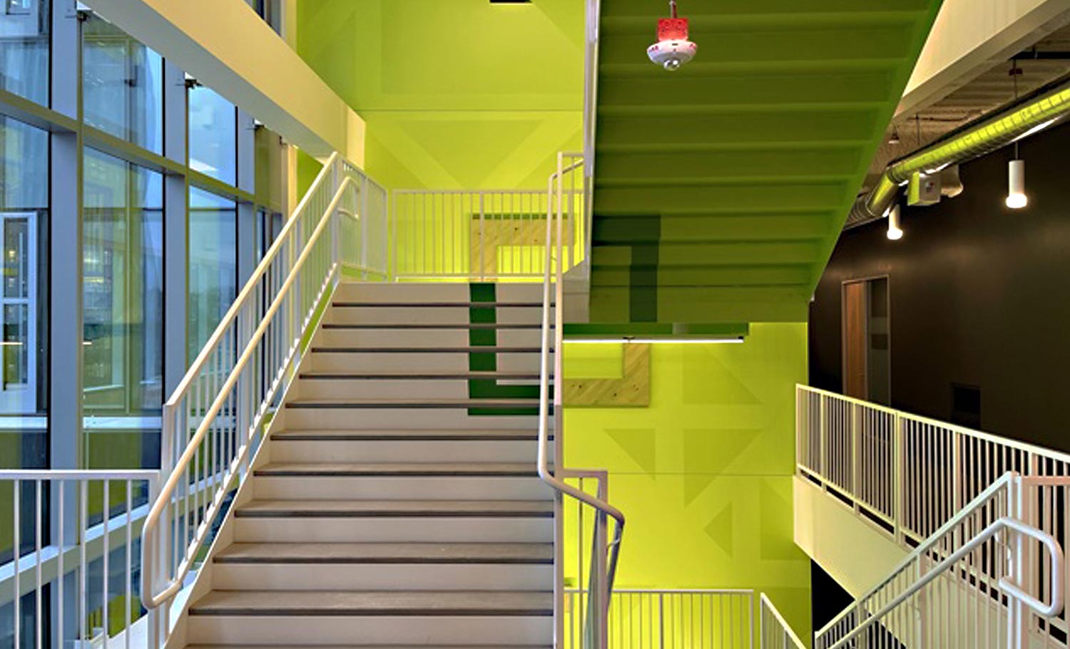Google Block 18-Seattle, WA Google’s Block18 building painted graphics in Seattle called for an Anamorphic Design on the staircases.