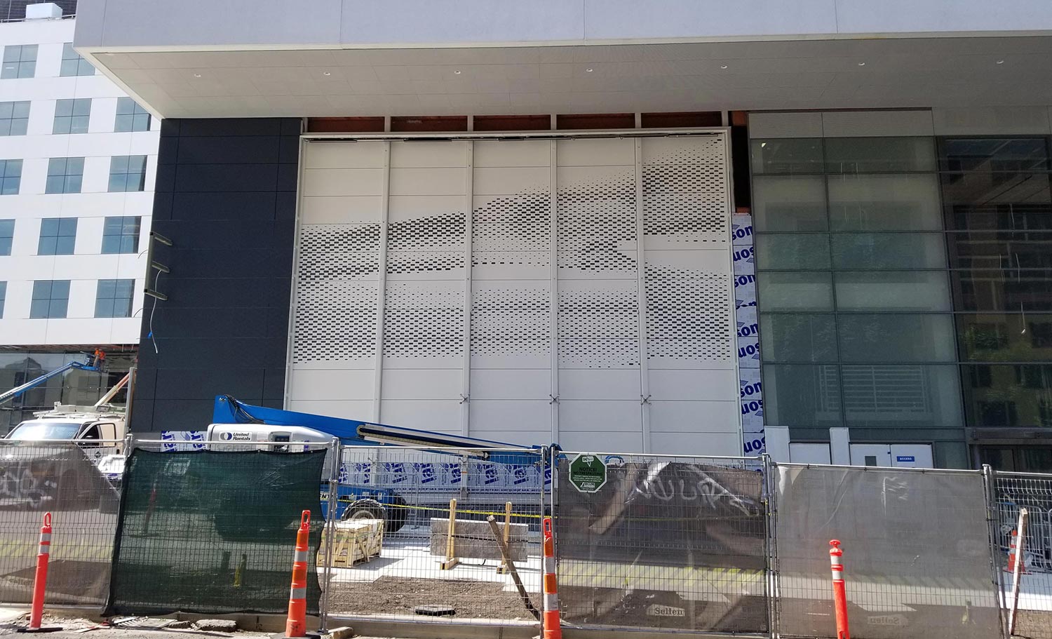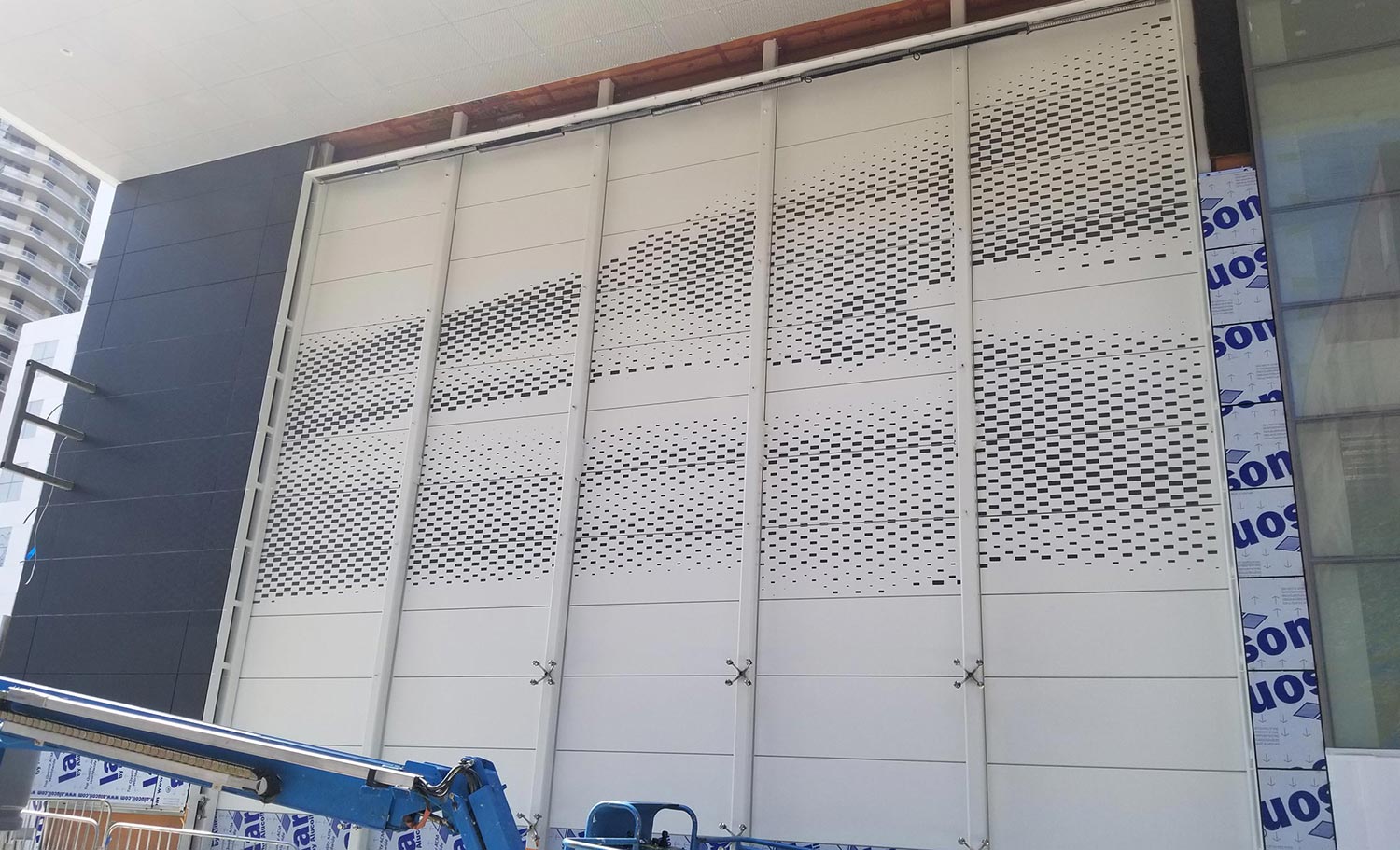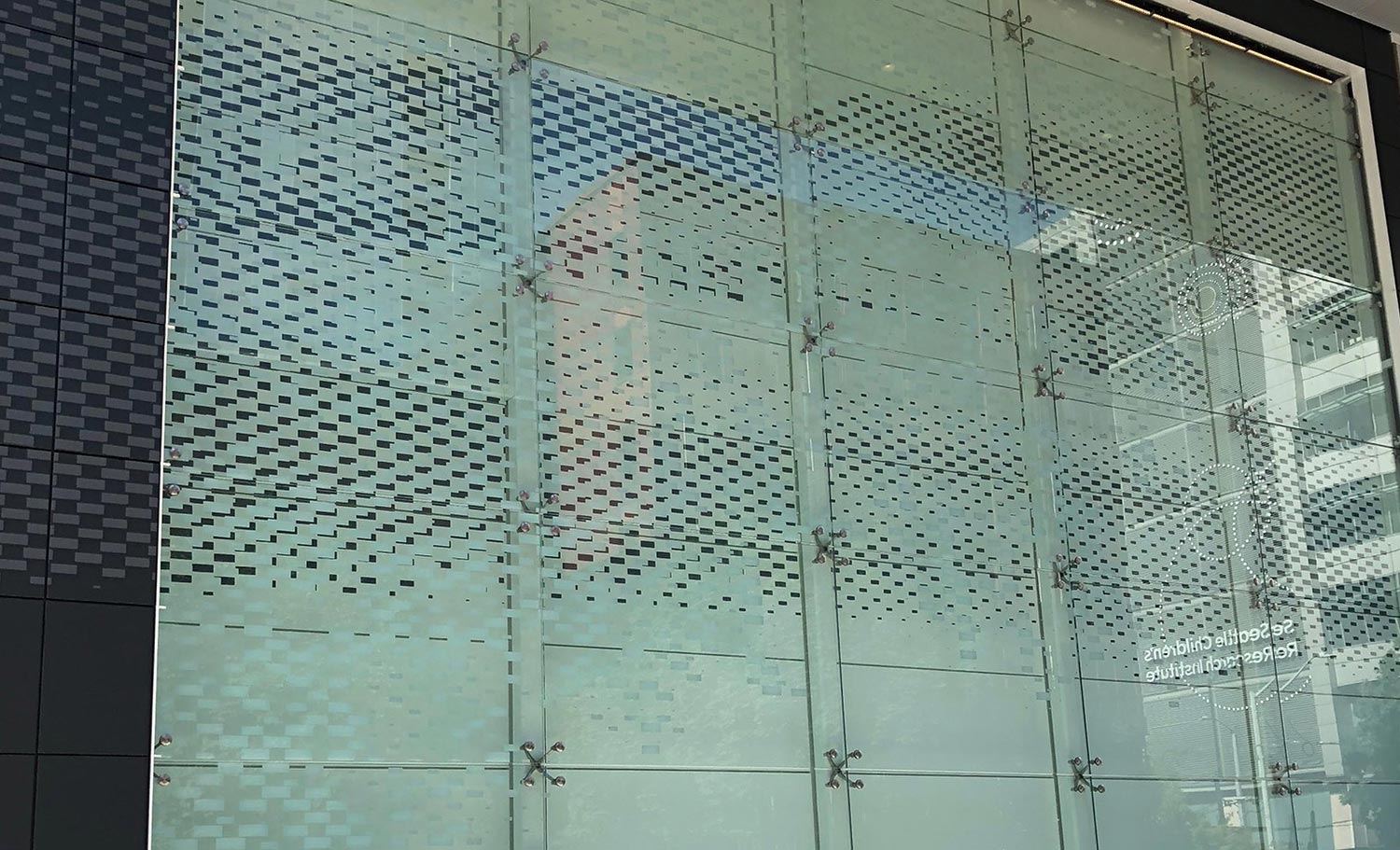 Hyatt Regency Seattle We were asked to do something that has never been done before. A non-repeating stenciled pattern reproduced on over 100 feet of wall space. The stencil had to be accurate within 1/8 inch across the entire 100 foot span. This is a very detailed process as we have to accommodate all of the wall transitions, corner bends, openings, doors, and other architectural elements. We provided a custom made sandblasting stencil for the priming and painting. This entire process was done in-house by our sign manufacture and design team, as well as our install and paint crew. We specialize in tackling those unique projects that require special planning and solutions.
