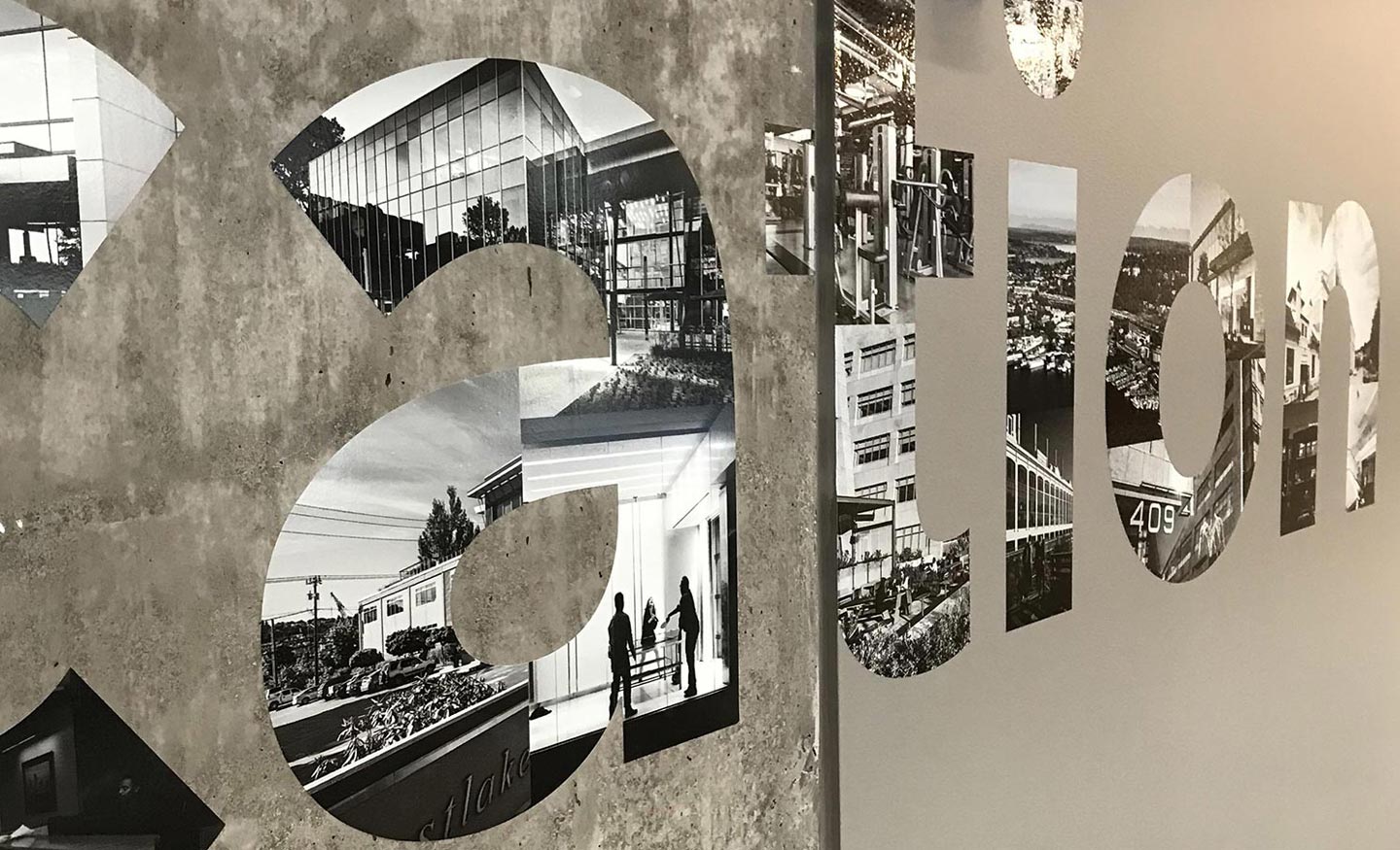 Alexandria Real Estate hired us to create printed wall vinyls for their Biotech Office Building. Green PVC free materials were used in this environmentally friendly installation.