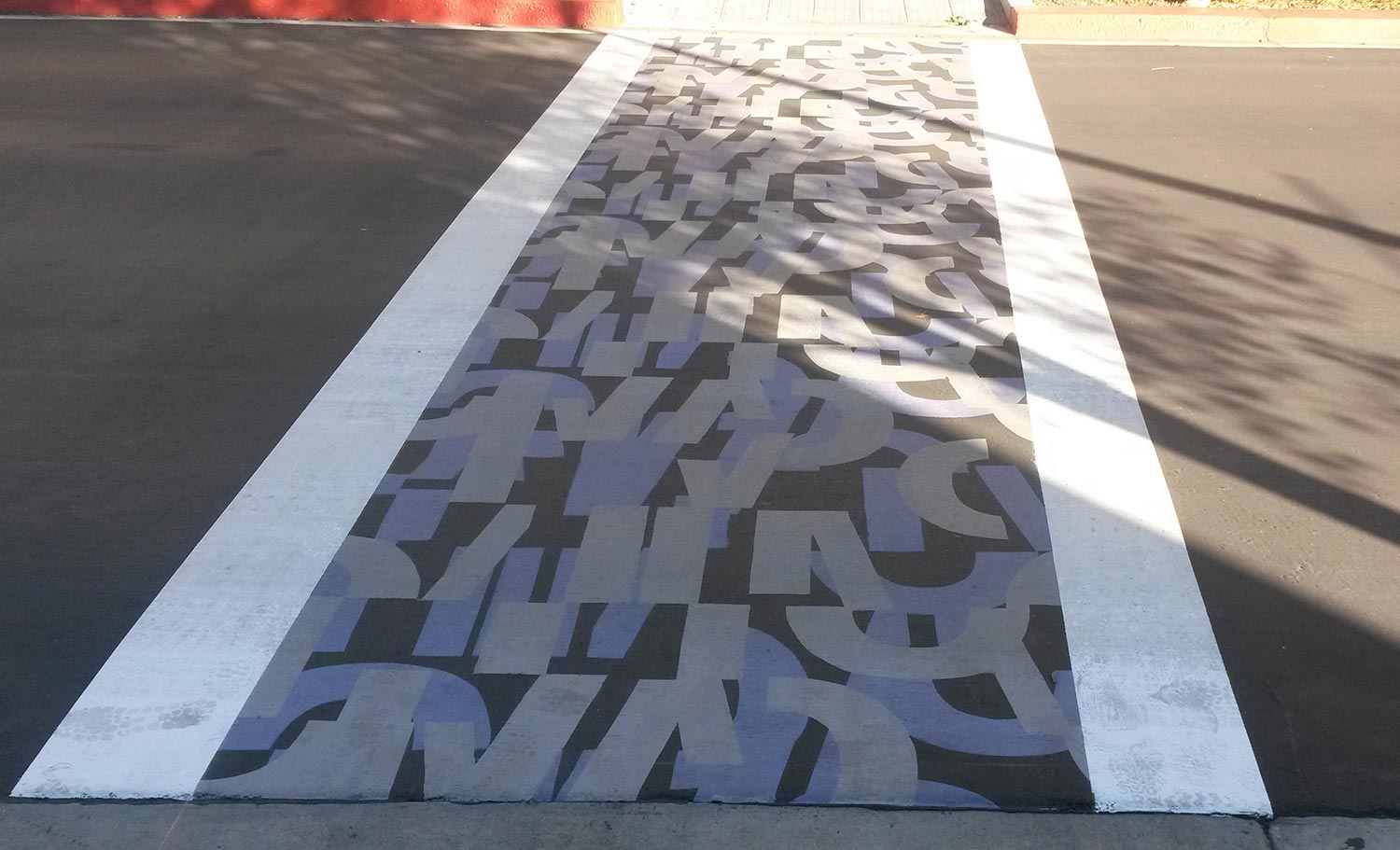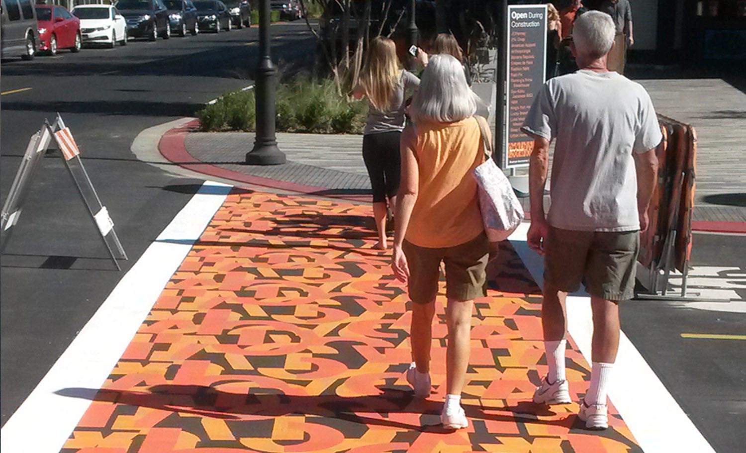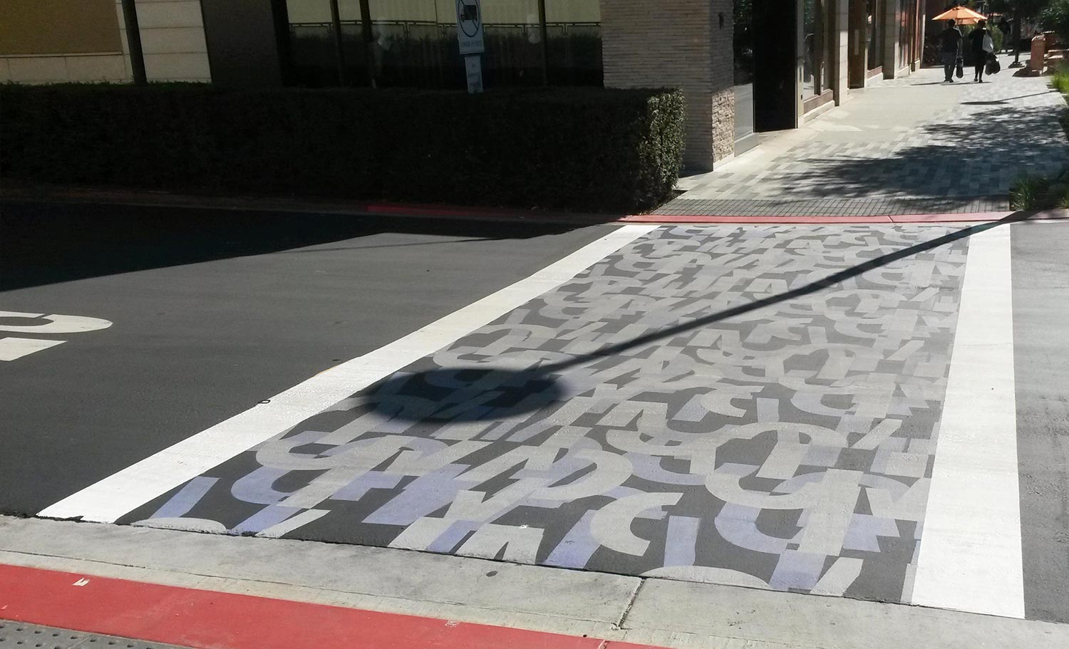 We were asked to apply multi-layered stencils with unique designs at the Victoria Gardens shopping center in Rancho Cucamonga California using traffic paint matched to very bright Pantone colors. Victoria Gardens needed skilled painters with an eye for detail to install these intricate graphics on the malls pedestrian walkways. This work was performed during night time hours requiring traffic control, lighting and lots of patience at this busy upscale mall. The five man crew finished the project in ten days.